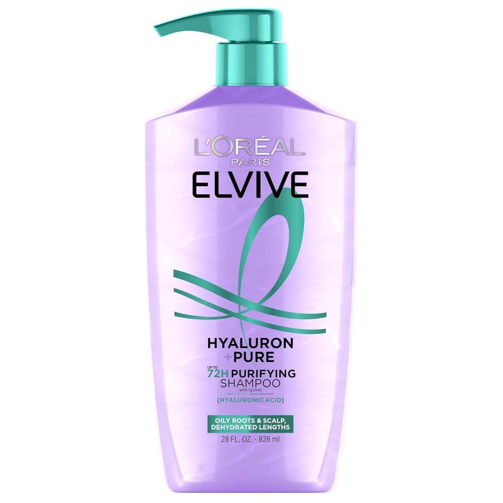 L’Oreal Paris Elvive Hyaluron + Pure 72H Purifying Shampoo for Oily Hair, Clarifying Shampoo with Salicylic Acid and Hyaluronic Acid, 28 Fl Oz