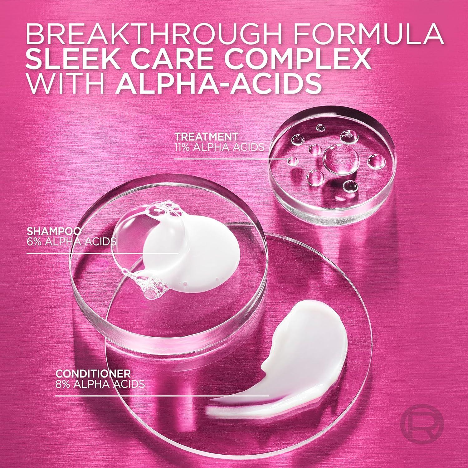 L'Oreal Paris EverPure Iron Sleek hair care system is an intensive smoothing routine that fights frizz all day to reveal smooth, manageable hair. Shampoo and conditioner cleanse dry, natural, or color treated, frizzy hair for humidity protection and frizz resistance up to 24 hours. Experience a luxurious lather with our expert formulas that are always gentle on color-treated hair. Our 100% sulfate free shampoo and conditioner are free of silicones, parabens, harsh salts, harsh surfactants, dye, gluten*, and is a vegan formula**. Validated by Colorists. Safe to use as daily hair care regimen. Our formulas are especially gentle on color treated hair. For best use, apply EverPure Iron Sleek Shampoo to wet hair and massage gently. Rinse. After shampooing, apply EverPure Iron Sleek Conditioner to wet hair and massage gently. Leave on for 1-2 minutes. Rinse. Follow with EverPure Iron Sleek Coat Treatment.